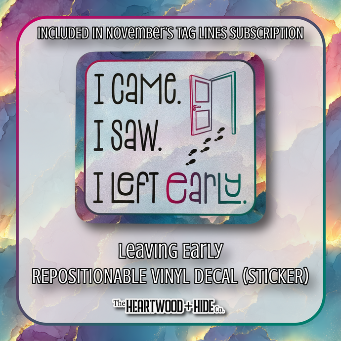 "Leaving Early" - Repositionable Vinyl Decal (Sticker) [TL '25 November]