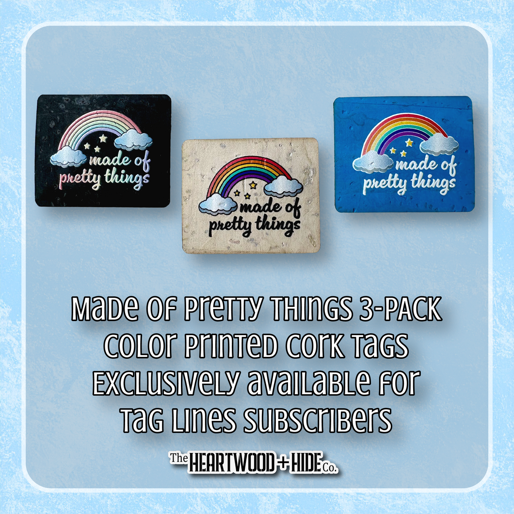"Made of Pretty Things" 3-pack - Color Printed Cork Tags - Tag Lines Subscriber Exclusive!