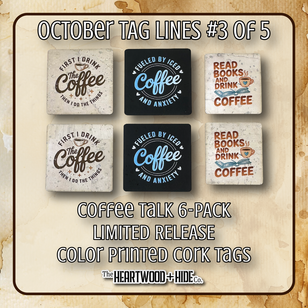 "Coffee Talk" 6-Pack - LIMITED RELEASE Color Printed Cork Tags [TL Oct 3 of 5]