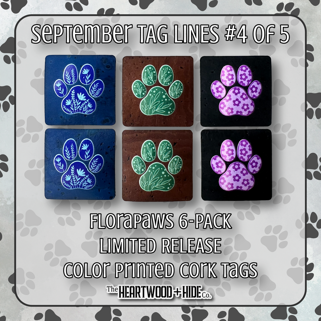 "FloraPaws" 6-Pack - LIMITED RELEASE Color Printed Cork Tags [TL Sept 4 of 5]
