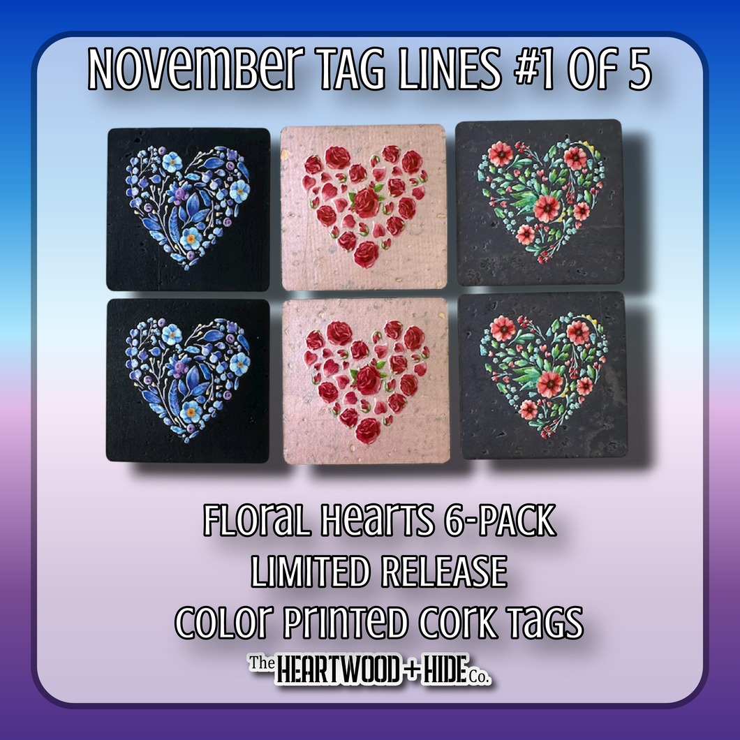 "Floral Hearts" 6-Pack - LIMITED RELEASE Color Printed Cork Tags [TL Nov 1 of 5]