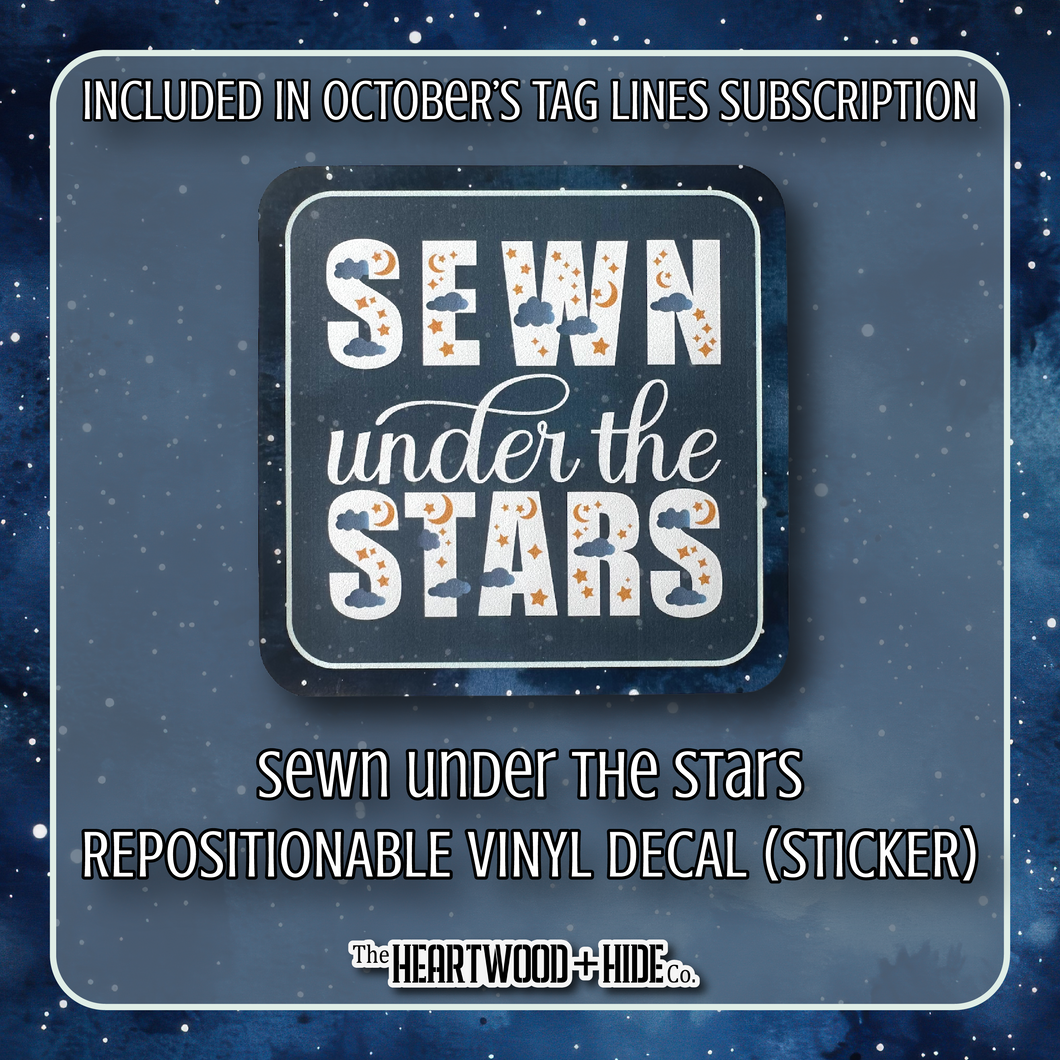 A love letter to late-night stitches and celestial dreams. This sticker whispers of quiet moments spent crafting beneath a sky full of possibility. Each letter is adorned with tiny clouds and twinkling stars, like a bedtime story. Perfect for makers, dreamers, and anyone who finds comfort in the soft glow of moonlight and the hum of a sewing machine. Stick it on your sewing machine, laptop, water bottle — wherever your creativity could use some starlight.