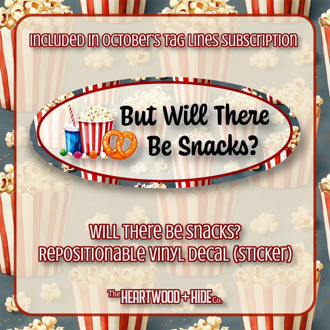 "Will There Be Snacks?" - Repositionable Vinyl Decal (Sticker) [TL October]