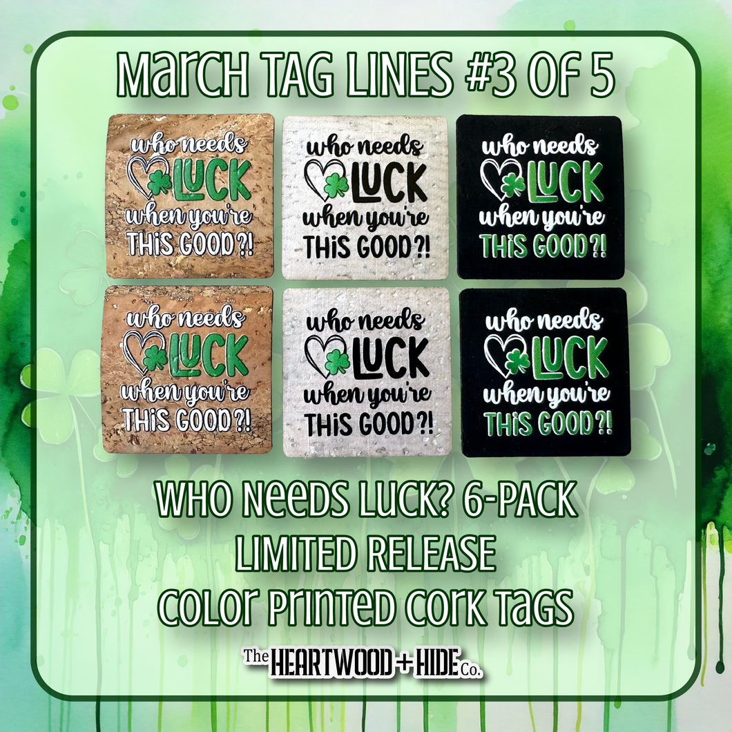 "Who Needs Luck" 6-Pack - LIMITED RELEASE Color Printed Cork Tags [TL Mar 3 of 5]