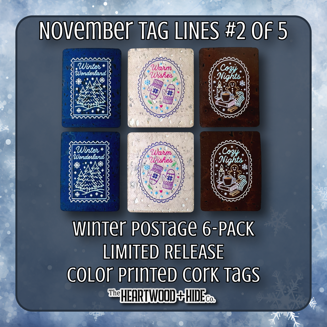 "Winter Postage" 6-Pack - LIMITED RELEASE Color Printed Cork Tags [TL Nov 2 of 5]