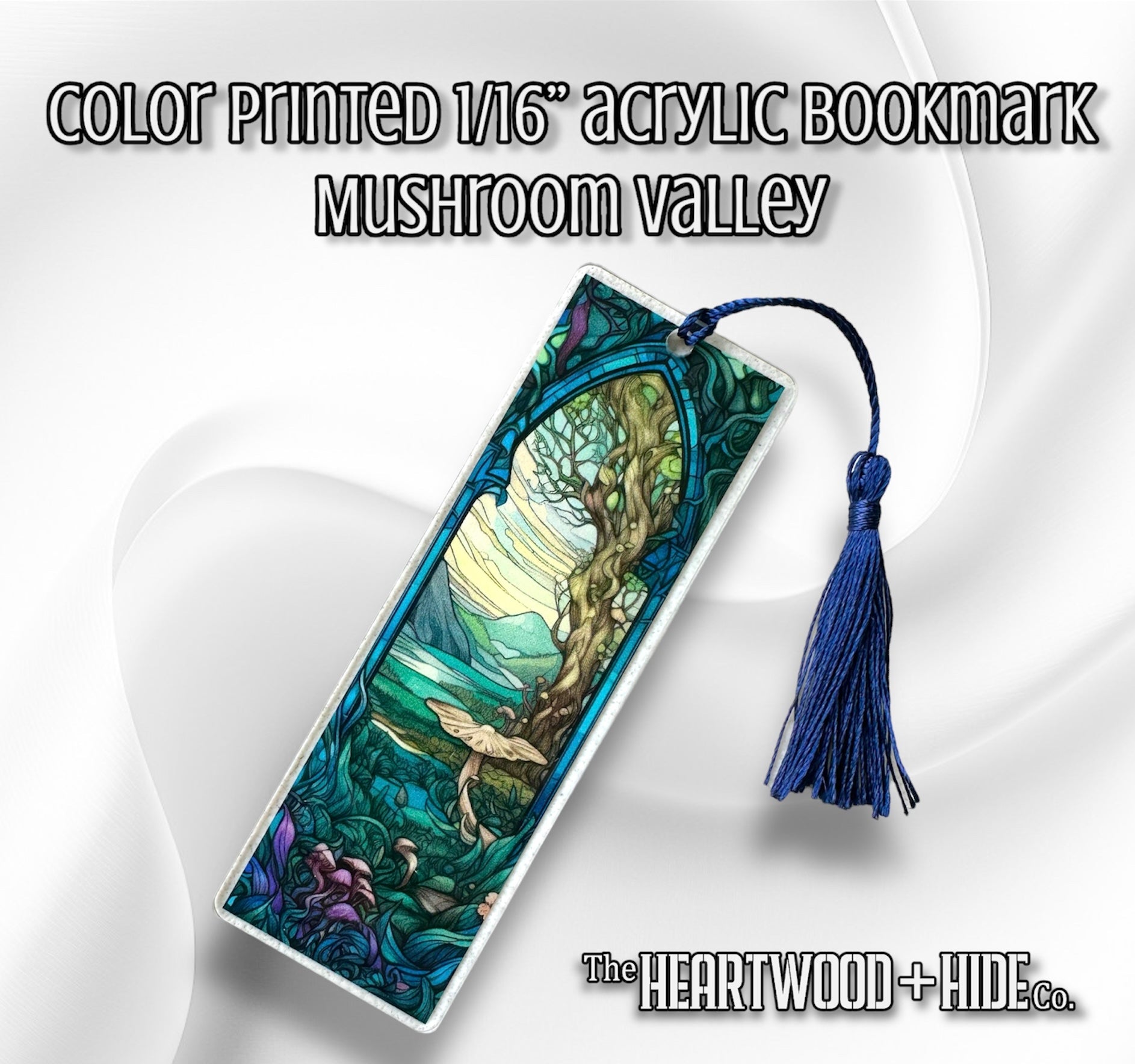 Get transported to another realm with our beautifully intricate Mushroom Valley bookmark! It is UV printed on 1/16" acrylic. This is thinner than standard acrylic but is still nice and sturdy. This is important as it doesn't put as much stress on the spine of your book!